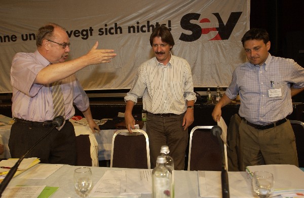 Mit Vizepräsident Giorgio Tuti und Nationalrat Paul Rechsteiner (Präsident SGB) am Kongress 2003